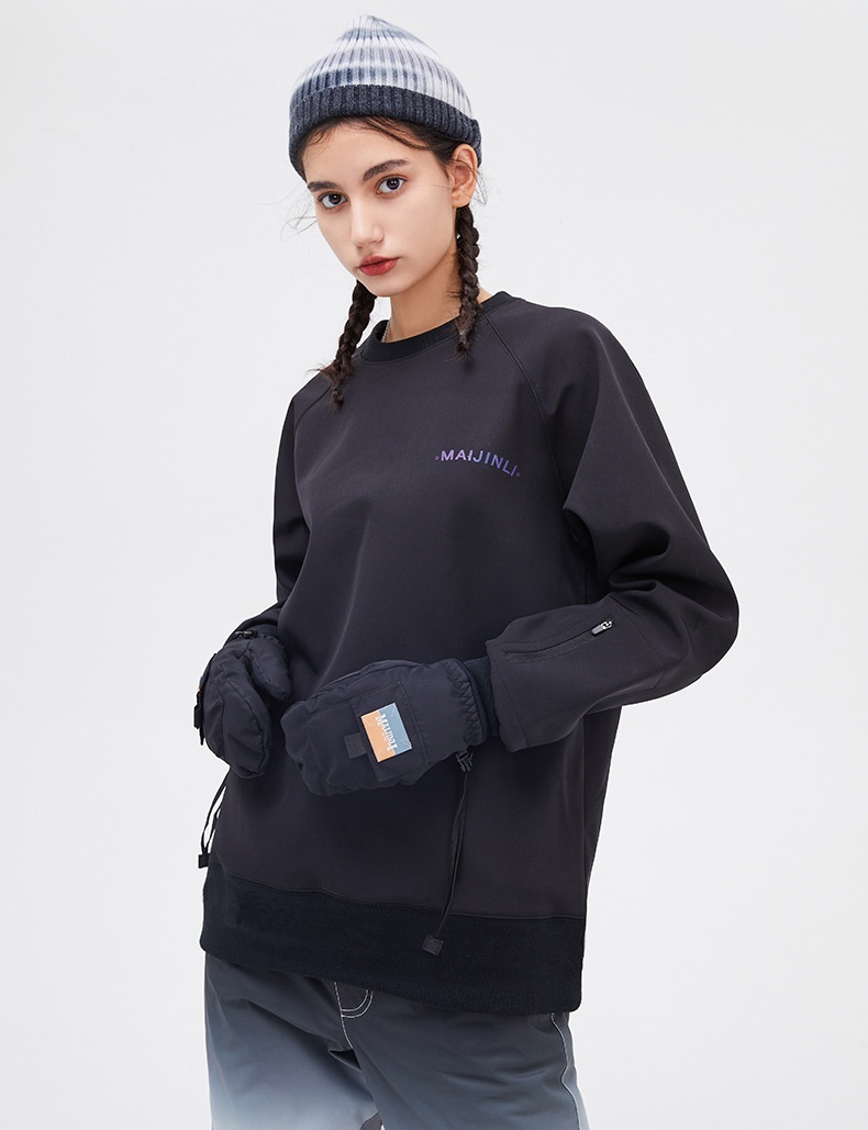 001 Bluza z kapturem, wiatroszczelna, wodoodporna, snowboardowa, narciarska, dla kobiet i mężczyzn, z okrągłym dekoltem, z kolorowym odblaskowym polarem, modne spodnie z szelkami