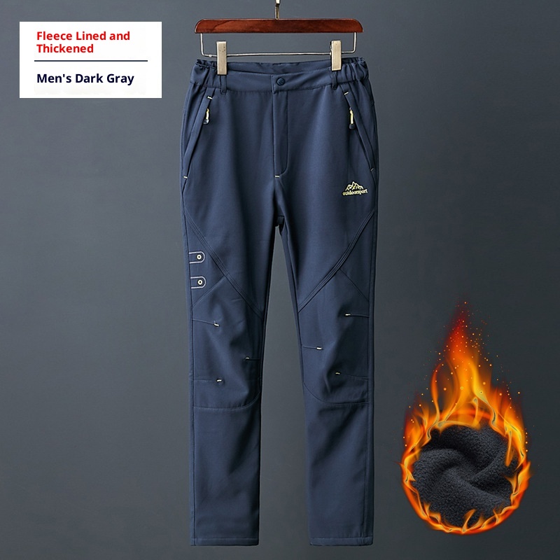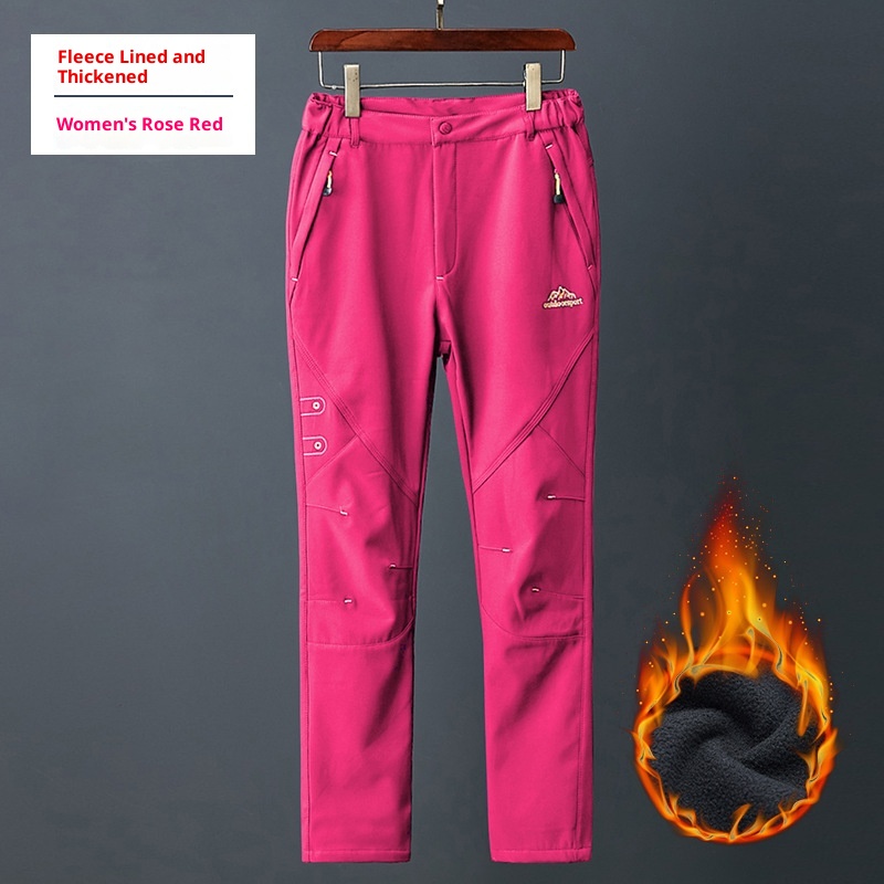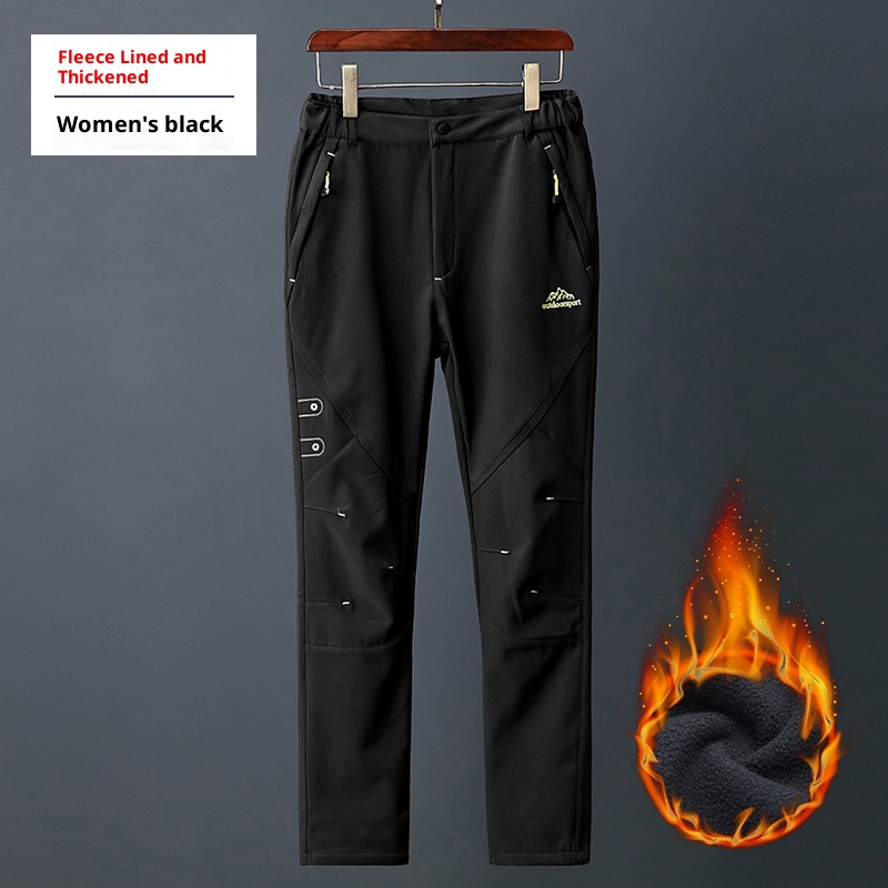 001 Zimowe spodnie sportowe typu softshell do uprawiania sportów na świeżym powietrzu dla mężczyzn i kobiet, wiatroszczelne, ciepłe spodnie turystyczne, styl dla par, podszyte polarem i pogrubione