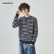APO Men's Clothing | Men's Knitted Sweater Autumn Loose Henry Collar Color Block Striped Long Sleeve Sweater Inner Wear Top