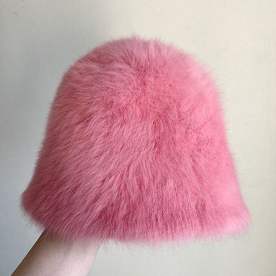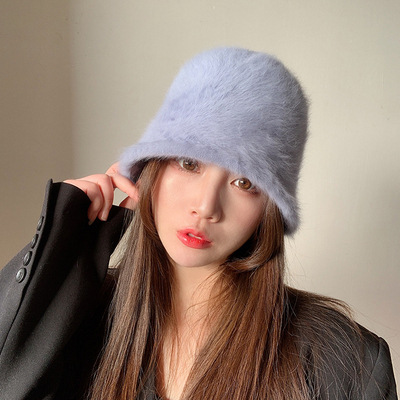 Kapelusze dla kobiet na zimę, koreańskie ins słodkie wiadro z włosia królika uniwersalny zimny i ciepły kapelusz rybaka, trend na kapelusze do basenu