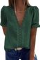 Damska szyfonowa koszula z głębokim dekoltem w serek, haftowana koronkowa koszulka z krótkim rękawem