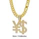 Hip Hop Currency Dollar Sign Pendant Diamond-Encrusted Light Luxury Long Cuban Necklace for Sale