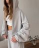 Damski, swobodny zestaw: kardigan z kapturem i spodnie – odzież domowa z długim rękawem (jasnoszary/brązowy, S/M/L/XL)