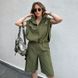 Dwuczęściowy komplet damski, luźny, swobodny, jednokolorowy, z kołnierzykiem typu "koszula-szort"