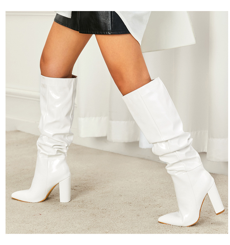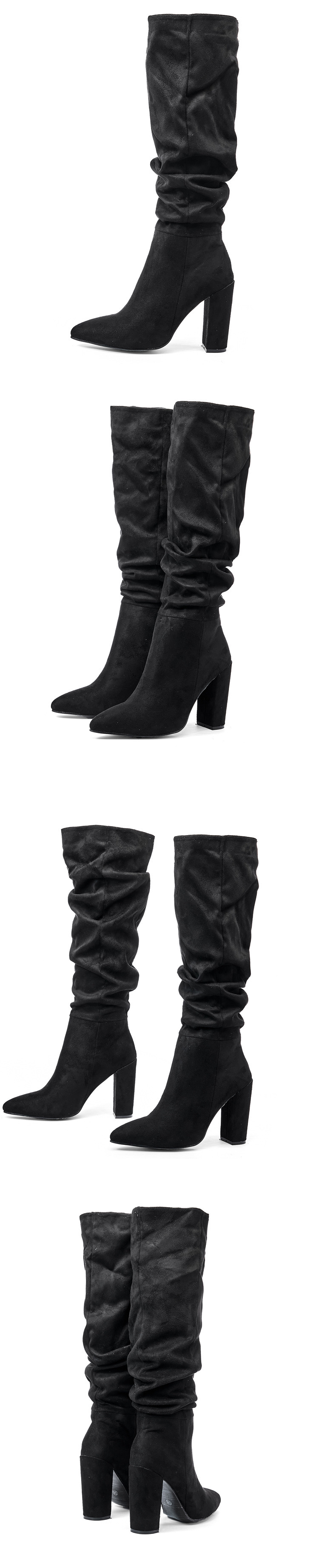 Damskie nowe zimowe modne buty w szpic, buty na grubym obcasie