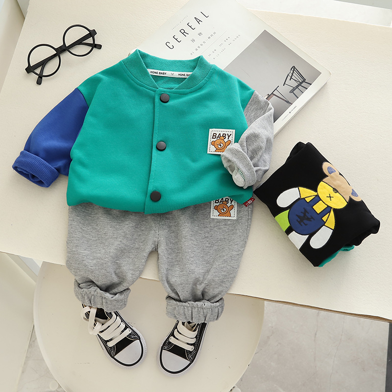 2022 New Boys' Autumn Wear Baby Spring and Autumn Two Piece Baseball Suit New Long sleeved Sweater Set