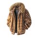 Bluza z kapturem i zamkiem błyskawicznym ze sztucznego kożucha – obszerny zimowy płaszcz z kontrastowym wykończeniem i podszewką w panterkę (mieszanka octanu, szaro-niebiesko-kawowa, rozmiar M-3XL)
