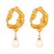 Francuskie kolczyki retro z lekkiego złota, puste, lawowe, nieregularne, dla kobiet z wisiorkiem z pereł słodkowodnych, przesadzone