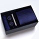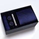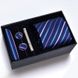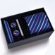 Zestaw prezentowy】Męski krawat, poszetka, spinki do mankietów, spinka do krawata, zestaw pięciu elementów, formalny, biznesowy, niebieski, w paski