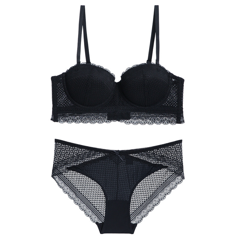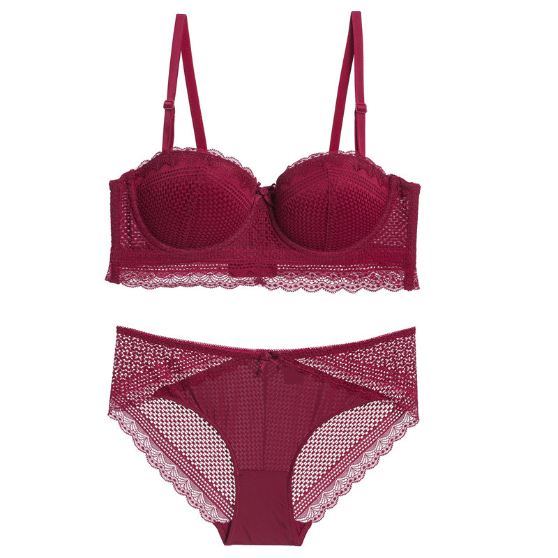 Half Cup Underwear Underwear Girl Gathers to Gather Side Breast Sexy Lace with Steel Ring Bra Set