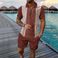 Męski 2-częściowy strój casualowy - koszula z krótkim rękawem zapinana na suwak i pasujące spodenki | Modny design z blokami kolorów