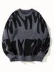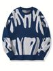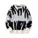 Men's autumn and winter new trendy version personalized round neck jacquard sweater, youth black and white splicing plus size knitted sweater, sweater