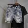 Męskie spodnie jeansowe z dziurami, letnie, cienkie, z nadrukiem, z przetarciami, dopasowane, średniej długości, uniwersalne, modne, pięciopunktowe