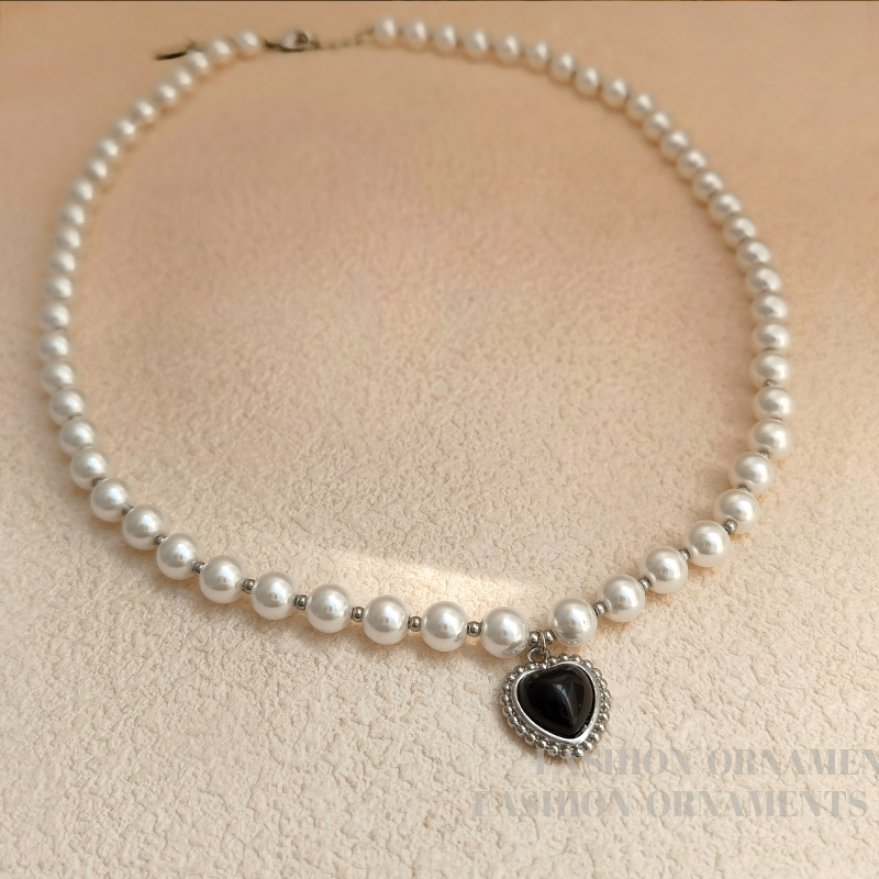 i luksusowy czarny naszyjnik z wisiorkiem miłosnym z francuską modną perłą, łańcuszek na obojczyk 1697