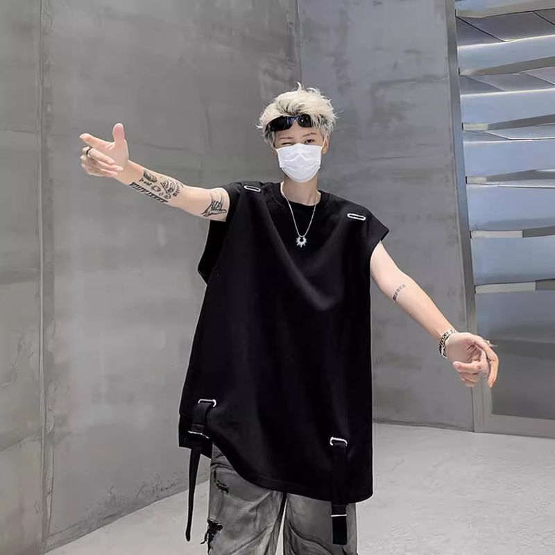 High street sleeveless T-shirt with small neckline design, camisole, men's trendy summer American short sleeved shirt