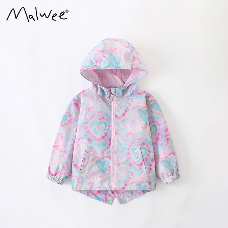 Malwee Girls' Trench Coat Jacket Autumn Winter Style Small and Medium Children's Hooded Cardigan Stylish Little Girls' Long Sleeve Children's Top