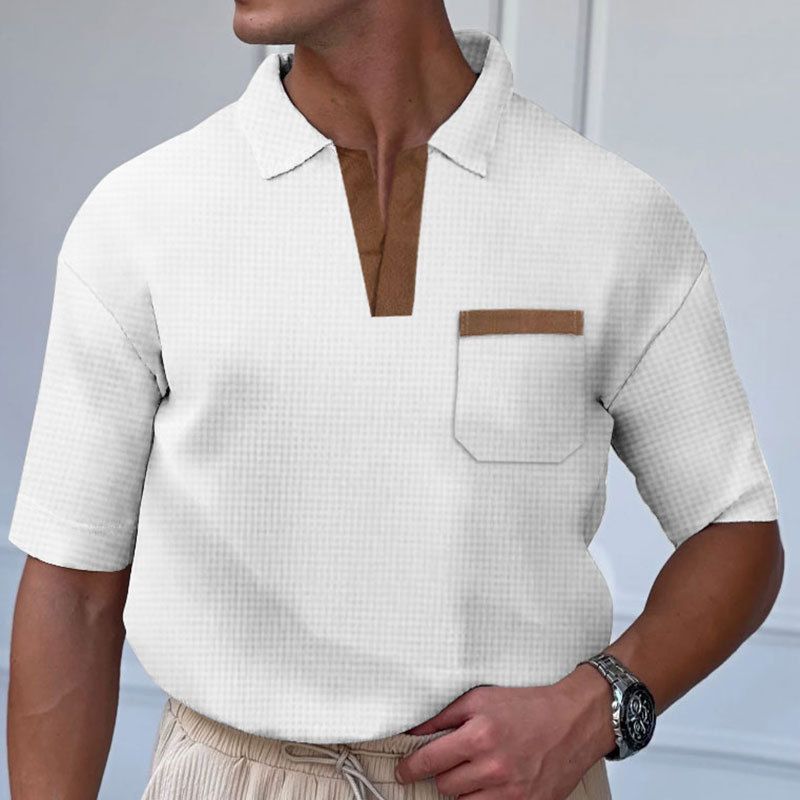 Letnia męska koszulka polo z krótkim rękawem i kieszenią, kołnierzykiem waflowym i dekoltem w serek_voghion.com