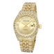 Luksusowy męski zegarek kwarcowy hip-hopowy z pełnymi diamentowymi akcentami, wodoodporny, z wyświetlaczem daty, ze stalową bransoletą i pełnym diamentowym kalendarzem