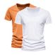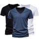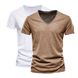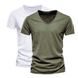 Męska odzież 2 sztuki Letnia męska jednokolorowa koszulka z bawełny z rozcięciami w serek z krótkim rękawem T-shirt z czystej bawełny dla mężczyzn