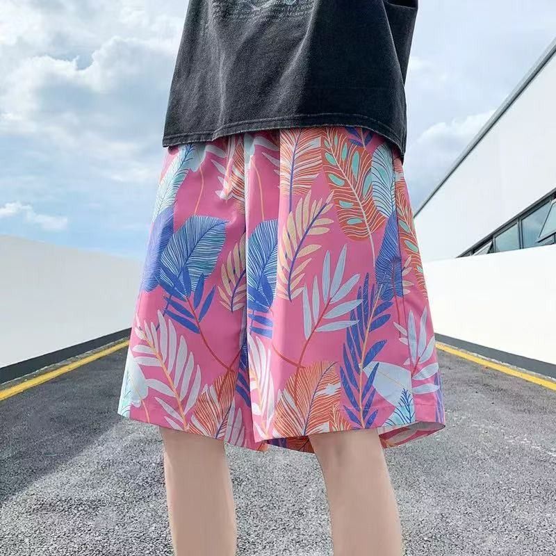 Men's Shorts Five-Point Summer Trendy Brand Casual Beach Hawaiian Print Quick-Dry Sports Rayon Shorts