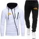 Męski garnitur z kapturem i nadrukiem, polarem i ukośnym zamkiem sportowym W01