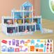 Świecący w ciemności zamek księżniczki dla mamy i dzieci DIY – kreatywny zestaw do zabawy w odgrywanie ról z wielopokojowymi, niebiesko-różowymi willami (71-298 szt.)