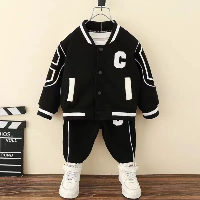 New handsome clip baseball suit for boys, children's sports jacket, children's spring and autumn clothing set, two-piece set
