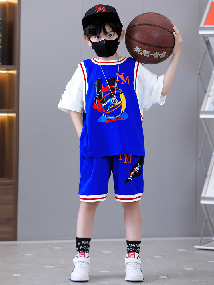 New Boys' Middle and Big Boys' Cotton to Boys' Ball Jersey Two Piece Set for Children's Sports Short Sleeve Basketball Training