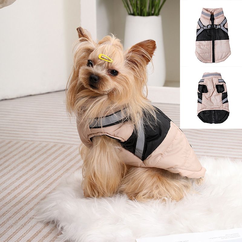 Nowa, gruba, ciepła kamizelka dla psa na jesień i zimę, odblaskowe ubranka dla małych i średnich psów, smycz i szelki