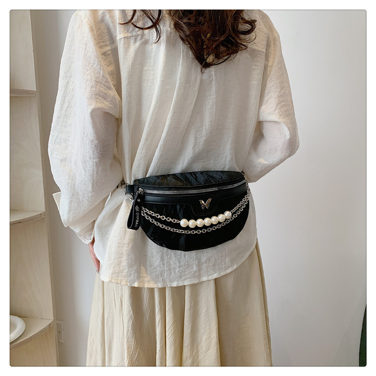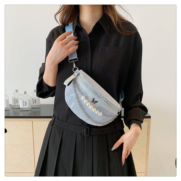 Breast bag for women 2024 summer new fashionable shoulder bag, stylish pearl chain crossbody bag, wide shoulder strap waist bag