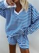 Summer New Women's Casual Stripe Set Long Sleeve V-neck Loose Top Sports Shorts 2-piece Set for Women