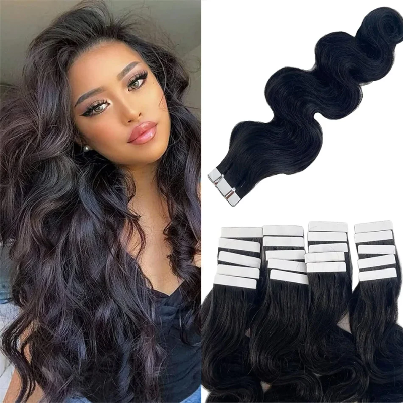 Taśma do przedłużania włosów 50 gramów naturalna czerń dla czarnoskórych kobiet prawdziwe ludzkie włosy do ciała skóra osnowa