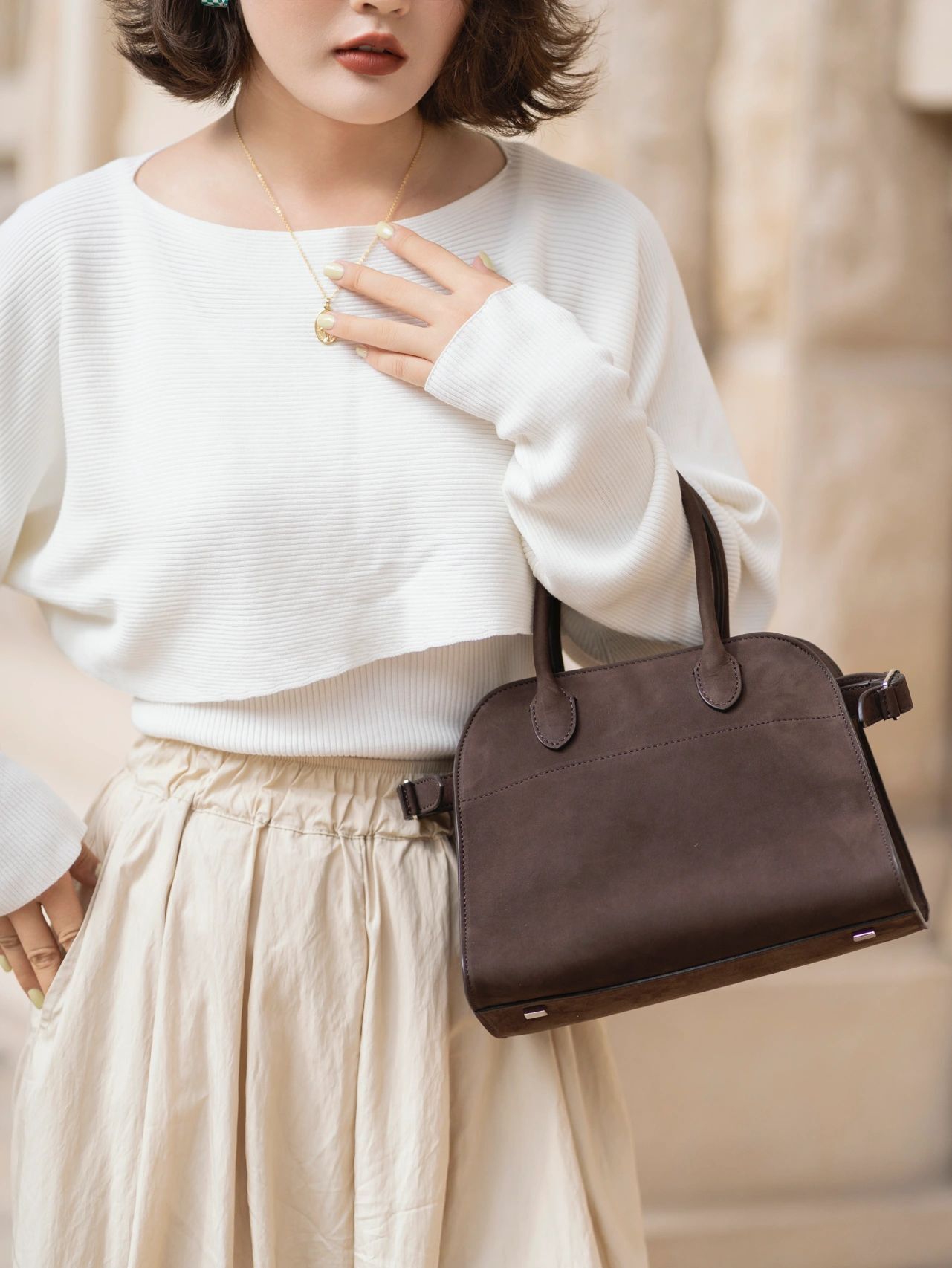 The Row genuine cowhide high-capacity tote bag with suede top layer Margaux 15 Dong Jie's same single shoulder handbag