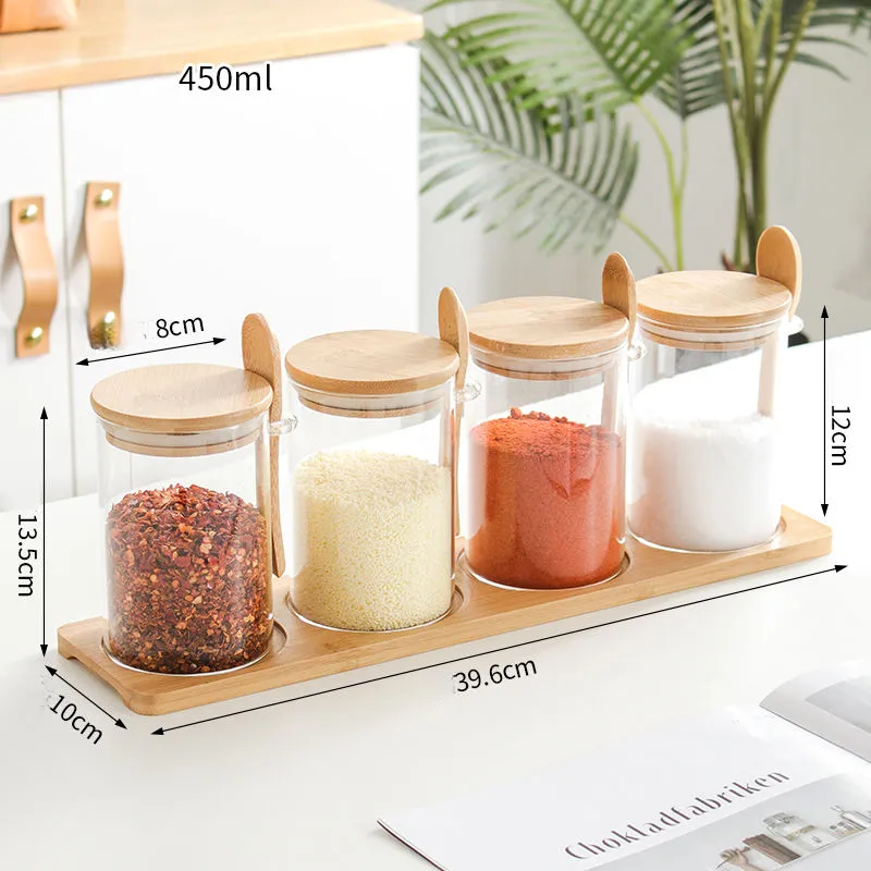 Transparent Glass Seasoning Bottle Seasoning Box Set Kitchen Storage Food Grade Sealed Seasoning Jar Salt Jar