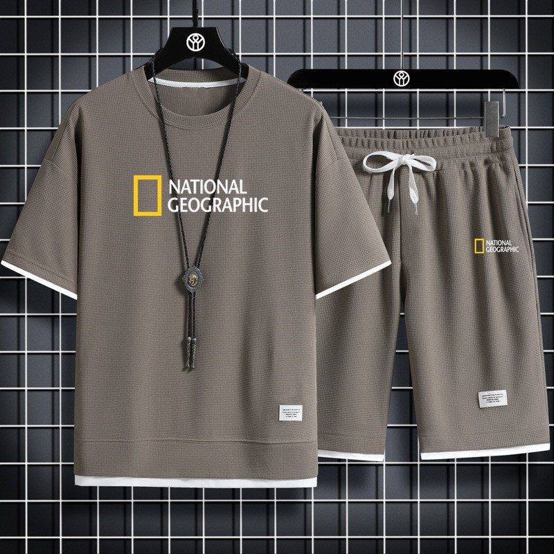 Dwuczęściowy zestaw męski T-shirt sportowy Waffle Short z krótkim rękawem i luźnym, krótkim rękawem, na lato
