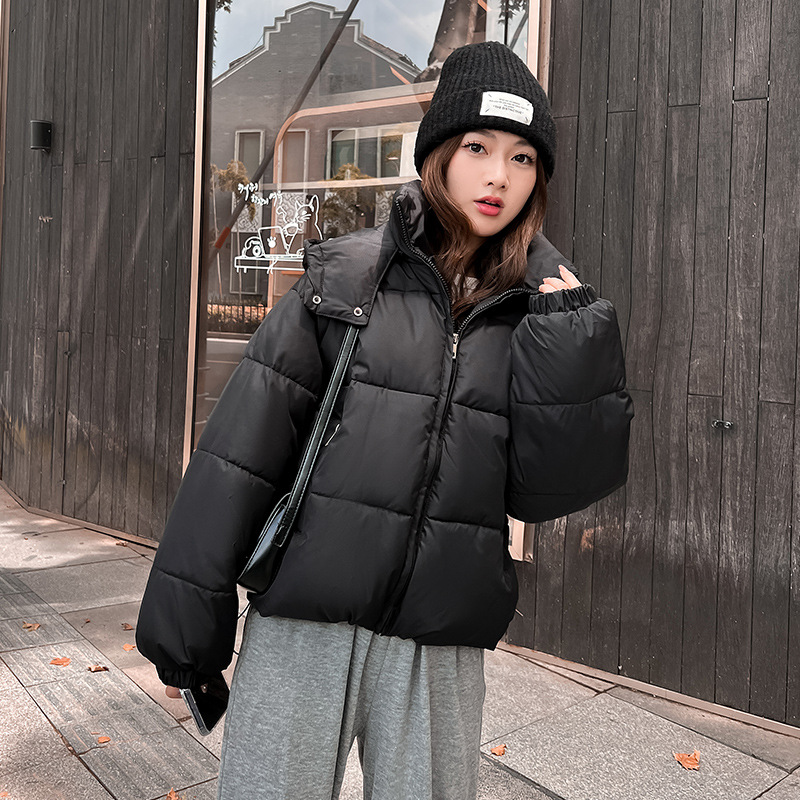 Zimowa puchowa kurtka bawełniana 2023 nowa bawełniana kurtka damska wersja koreańska z kapturem luźna kurtka chlebowa krótka kurtka studencka
