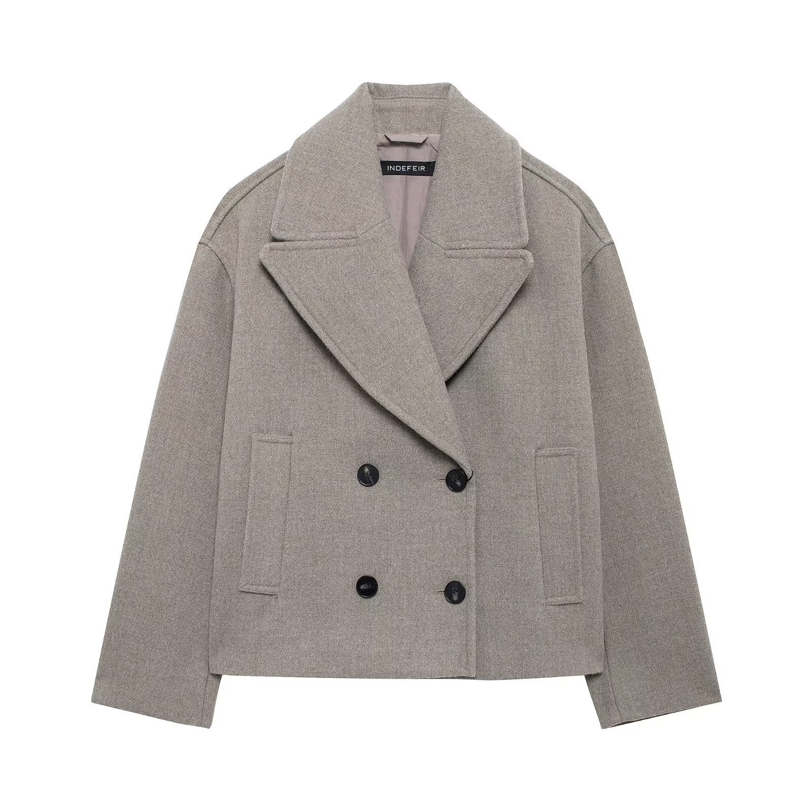 Damski płaszcz dwurzędowy z ozdobnymi guzikami na jesień/zimę 2024 z nowej mieszanki wełny