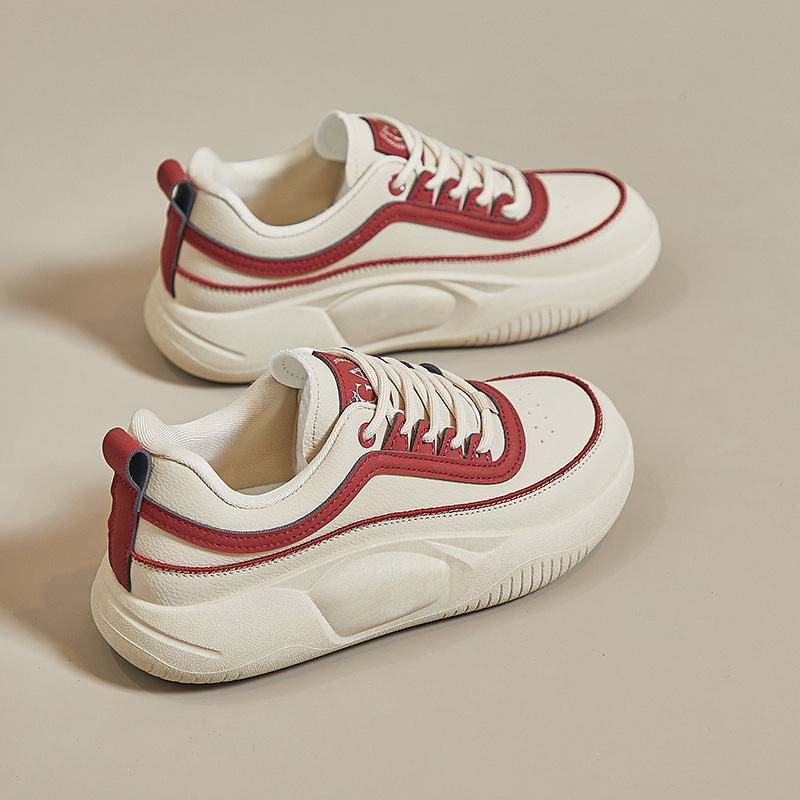 Shoes popular on the internet, same Korean style fashionable casual shoes, leather top low cut thick sole women's shoes, trendy matching breadboard shoes for women