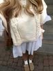 Damski sweter z dzianiny sznurowanej – oddychający sweter z krótkim rękawem szydełkowy w kolorze kremowo-białym do stylizacji boho i casualowych