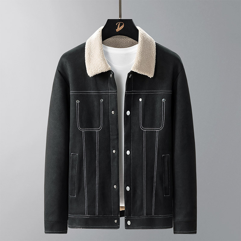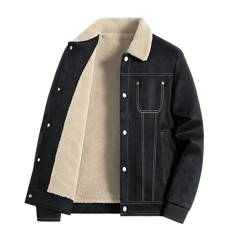 Winter lamb cashmere jacket for men's outdoor leisure, plush and thick cotton jacket, loose and warm, middle-aged and young people's lapel cotton jacket
