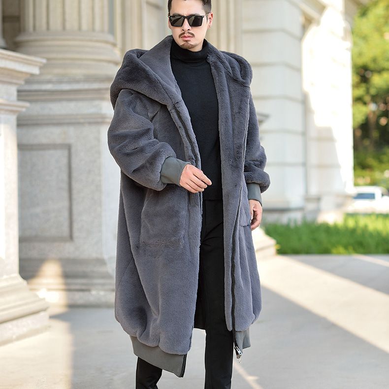 Zimowa nowość, męska kurtka ze sztucznego futra królika średniej długości, w stylu koreańskim, luźna, gruba, ciepła kurtka ze sztucznego futra